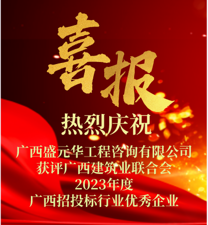 • 廣西盛元華工程咨詢(xún)有限公司獲評(píng)廣西建筑業(yè)聯(lián)合會(huì)2023年度廣西招投標(biāo)行業(yè)優(yōu)秀企業(yè)